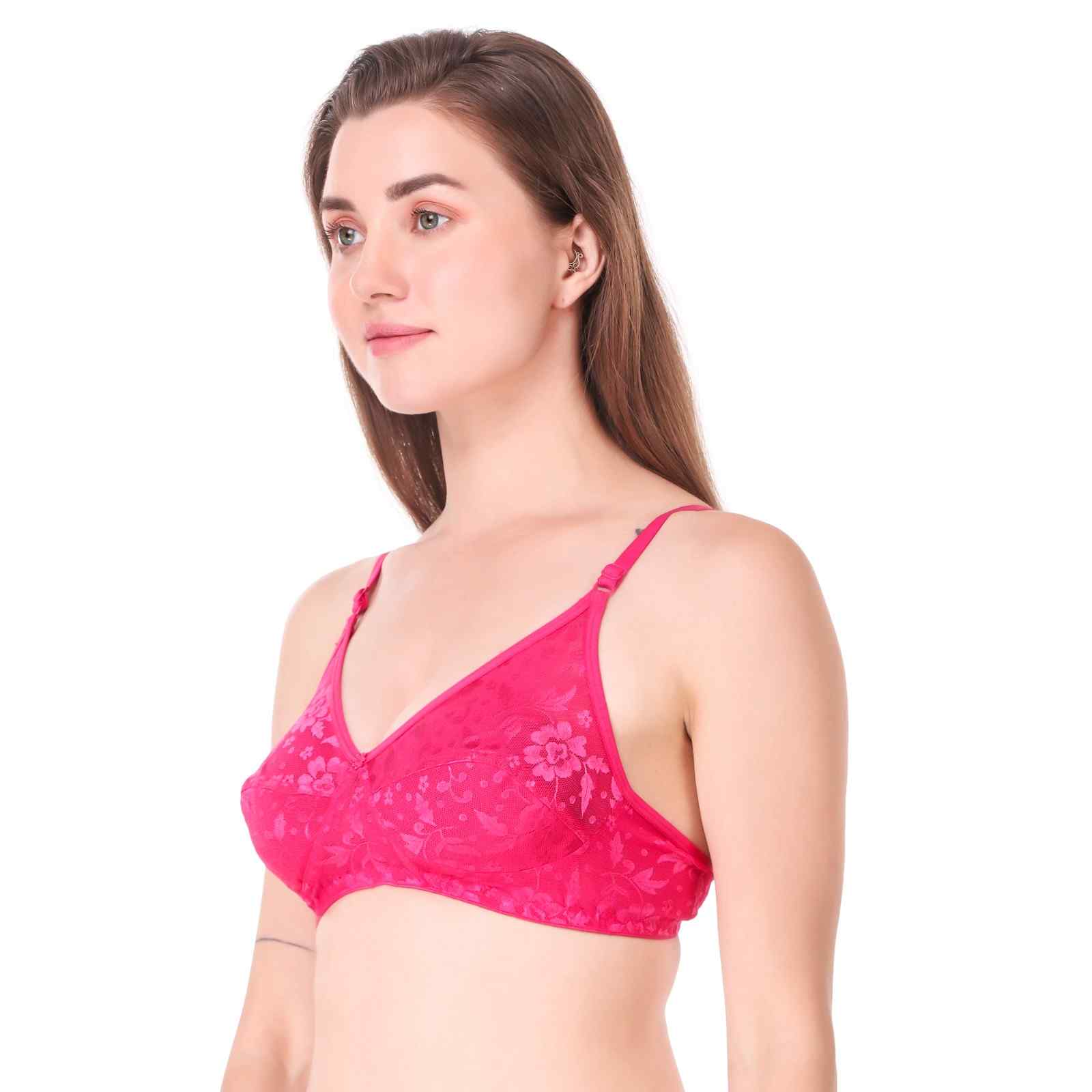 Floral Soft Cup Bra – Breathable, Non-Padded (Hot Pink) (Pack of 1)